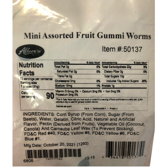 Albanese Assorted Fruit Gummi Worms (5lbs)